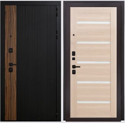 - Комплектация: дверной глазок, ночная задвижка, фурнитура черная прямоугольная 17 серия, декоративные накладки с защитой от продувания, порог из нержавеющей стали, комплект ключей.